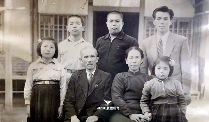 【約1951林悟真長老全家留影於嘉義寓所庭院】3