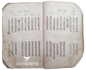 圖為本詩歌80年前,林悟真、張家當年所使用的詩本摘錄,無歌譜、無主題,僅有歌詞。4