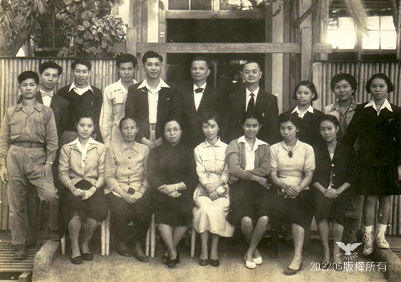 後排左起:○○○(嘉義教員)、○○○、○○○、劉家發(教務)、蔡廷輝(財務)、張俊仁(系負責、屋主)