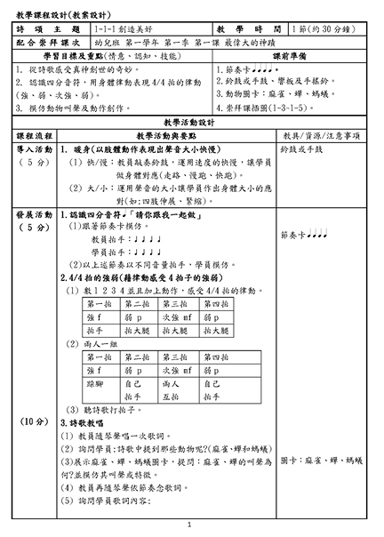 2. 教學活動流程中有標示粗體字的活動名稱,資深教員或具音樂背景教員概覽後,即可快速瞭解上課流程與課程內容,提供教學點子,作為教學參考,並節省備課時間。