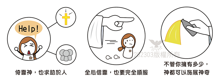 我們都相信神有能力解決任何困難,所以才倚靠神,但當神的方法跟人想的不一樣時,你會怎麼做?憑信心倚靠神,也要完全順服,即使當下不太明白,也請努力一試吧!