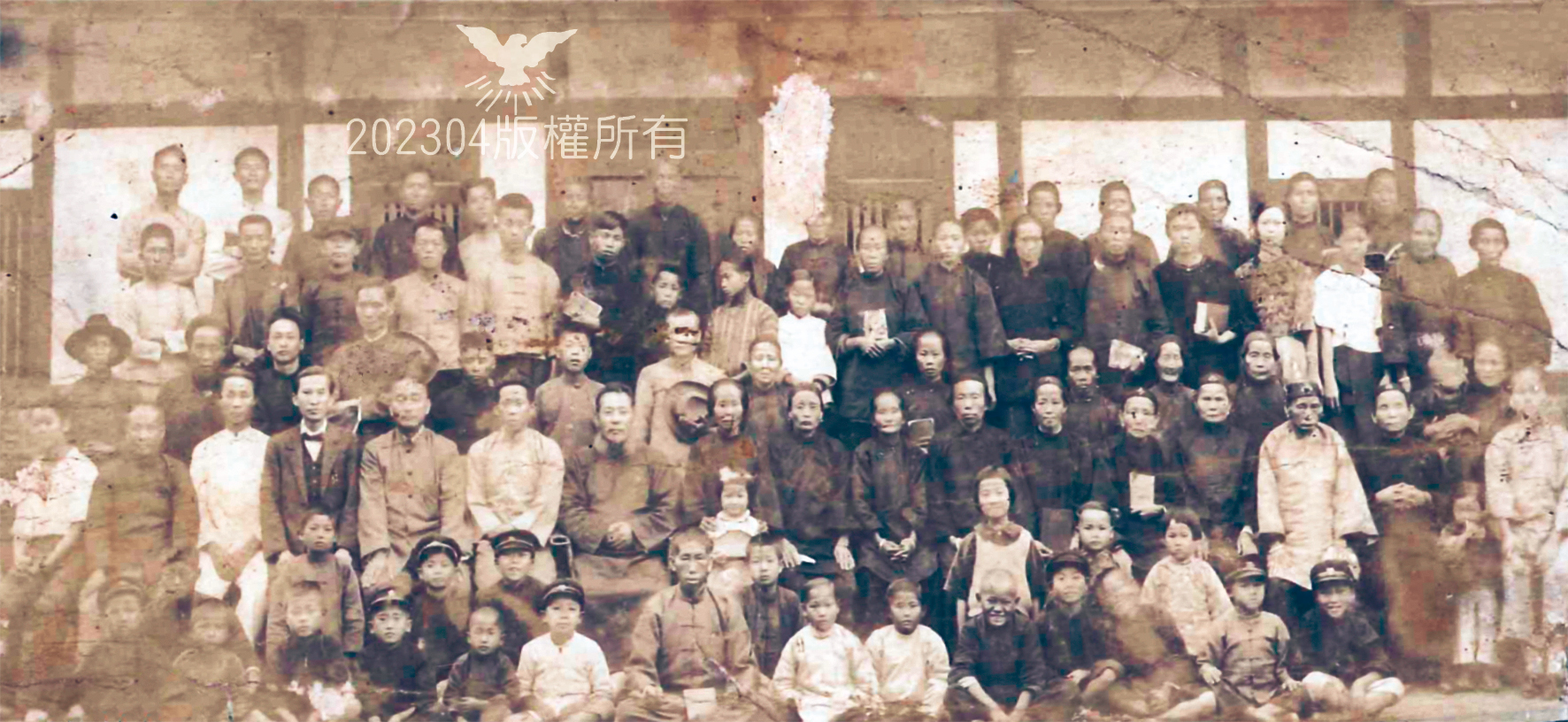 坐椅者左四:蔡海濤,左六:王永生執事,左七:郭多馬長老(穿馬掛)、許腓比女執事?