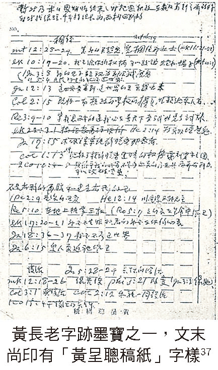 黃長老字跡墨寶之一,文末尚印有「黃呈聰稿紙」字樣37