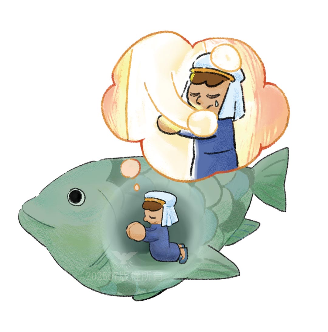 今天,我們不管是做聖工,或是日常生活中,如果與神的旨意相衝突時,而我們又只想按著自己的心意事奉或生活時,是否感受到自我意志挫敗而心靈發昏?是否不願意事奉神、想躲避神的面?這節經文,點出改變的關鍵──從陰間的深處再次仰望神的聖殿,也就是想起神、在神面前禱告(拿二4、7),想起「救恩出於耶和華」(拿二9)。因此,我們平日就要與神建立良好的關係,遇到挫敗時,才不會一股腦兒的埋怨神,而是想起神的主權,想起聖經的話語,並到神面前禱告,真心明白救恩是出於神的,如此能使自己回到救恩的軌道上。