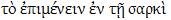 第24節當中的「 留在肉體中」是指他仍舊繼續存活下來之意。4他之所以仍然活著是「 更需要」是「 需要」的比較級,也就是說保羅把他立即安然見主與繼續活著來造就腓立比教會作個比較,他仍覺得存留下來更是需要。