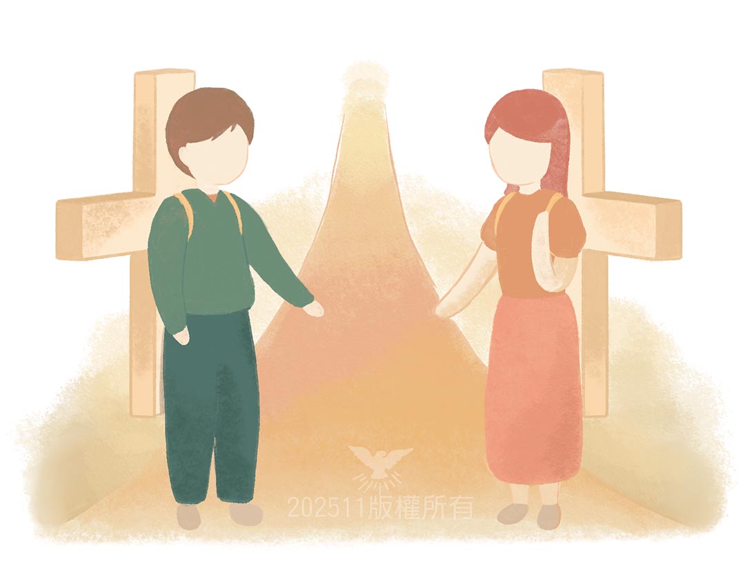 神為人道成肉身來到世上,為了成全救恩受唾罵、受鞭傷,每當我們想起主耶穌手上和腳上的釘痕以及兩肋流出的血和水,都會熱淚盈眶,只是,在我們學習主耶穌的樣式這項課題裡,「犧牲自己」是否會是選項之一?主耶穌願意為我們犧牲是因為祂愛世人,而我們是否真正能夠體會祂這樣的愛?「婚姻」是讓人體會犧牲中成全救恩的重要方式。這並不是說婚姻很可怕如同釘在十字架上一般,而是進入婚姻的生命,會充分理解並體會耶穌為著救贖而走向十字架「捨己」的感受。