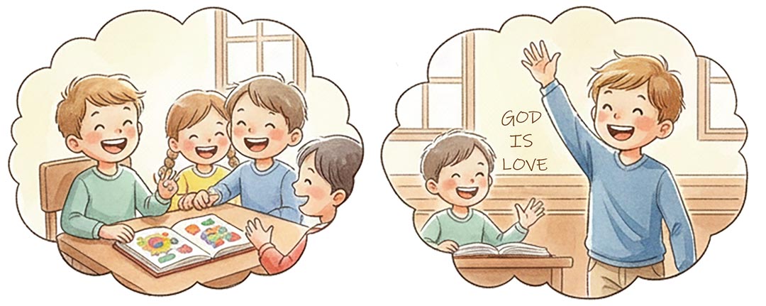 我們家中接受學校教育的孩子,在放學後返家,在安息日(星期六)到教會聚會,他們得彌補學校教育的不足,因為學校的教育沒有教我們的孩子認識真神。認識真神首先要能承認這位造物的主,祂奇妙的作為、創造並賞賜每一位祂所愛的人;這也就是說,凡祂所造的人,都是祂所愛的,祂都願意給予救贖。認識神的本性是教會中實施宗教教育的目標,自我們的孩童還小的時候,從熟悉聖經經文到正確詮釋經文,並且能用神的話來面對生活。