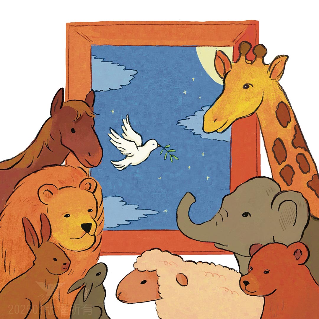 開窗,也開啟與世界連結和互動的序曲。40天後,挪亞放出一隻烏鴉,牠一去不返,自尋落腳之處。想想,當我們視野開闊,期待可盡情打拚、自由的明日,是否和烏鴉一樣,選擇自我放飛的人生,忘記了神的吩咐與期待。
