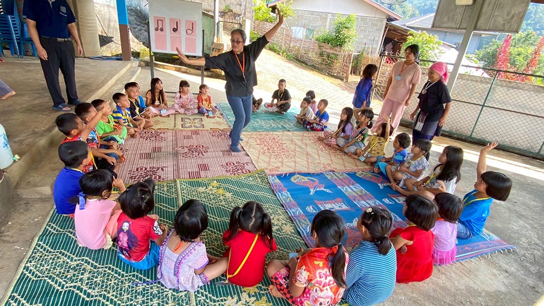 為了讓孩子們在短時間內能親近神、歌頌神、認識神,並願意在課程中分享神的愛,我們選擇以他們最熟悉的「泰文」,將華語歌詞翻譯後來教唱。